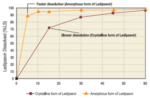 This solid-solid dispersion technology of Ledipasvir ensures faster dissolution rate compared to crystalline form.